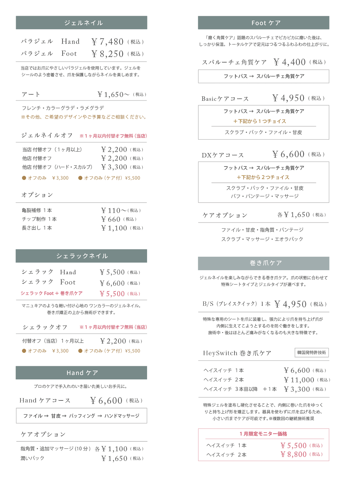 パーキング有りFacial&Body : 芦屋市茶屋之町 2-21-2FEye&Nail : 芦屋市茶屋之町 2-22-4F